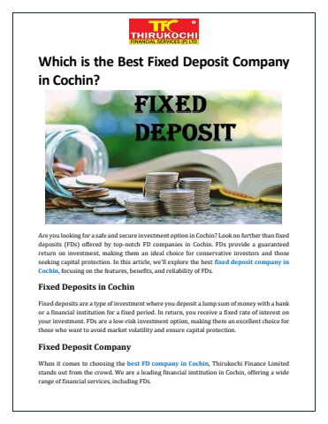 In this article, we'll explore the best fixed deposit company in Cochin, focusing on the features, benefits, and reliability of FDs.