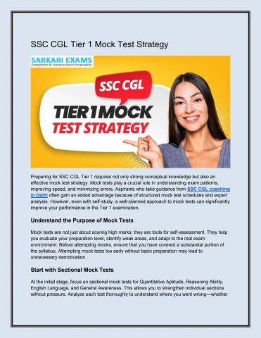SSC CGL Tier 1 Mock Test Strategy