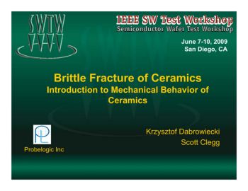 Brittle Fracture of Ceramics Introduction to Mechanical Behavior of Ceramics Krzysztof Dabrowiecki Scott Clegg June 7-10, 2009 San Diego, CA Probelogic Inc