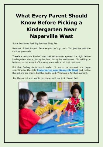 What Every Parent Should Know Before Picking a Kindergarten Near Naperville West