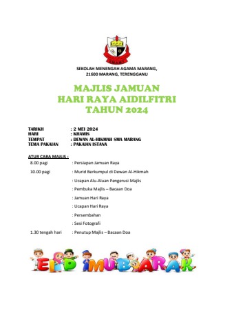 MAJLIS SAMBUTAN HARI RAYA AIDILFITRI 2024 (2 MEI 2024)