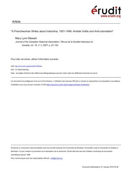 A Frenchwoman Writes about Indochina, 1931-1949: Andrée Viollis and Anti-colonialism MARY LYNN STEWART Abstract “A Frenchwoman Writes about Indochina, 1931-1949 ...