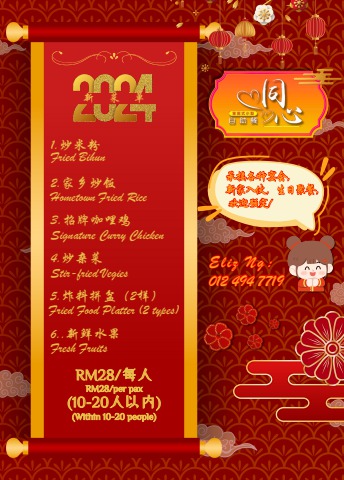 1.炒米粉 2.家乡炒饭 3.招牌咖哩鸡 4.炒杂菜 5.炸料拼盆(2样) 6..新鲜水果
