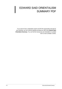 1/13 Edward Said Orientalism Summary EDWARD SAID ORIENTALISM SUMMARY PDF If you want to have a destination search and find the appropriate manuals for