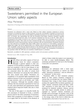 Sweeteners permitted in the European Union: safety aspects Alicja Mortensen Department of Toxicology and Risk Assessment, Danish Institute for Food and Veterinary ...