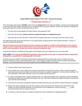 1 ! Target EXAM 2 Study Guide for PSYC 1030 – General Psychology ***PLEASE READ CAREFULLY*** This is the target study guide for EXAM 2, which will cover Chapters 5 ...
