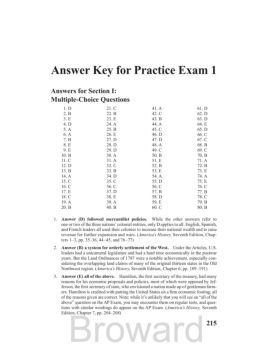 215 Answer Key for Practice Exam 1 Answers for Section I: Multiple-Choice Questions 1. D 2. B 3. E 4. D 5. A 6. A 7. B 8. E 9. E 10. B 11. C 12. D 13. B 14. A