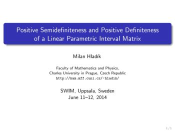 Positive Semidefiniteness and Positive Definiteness of a Linear Parametric Interval Matrix Milan Hlad´ık Faculty of Mathematics and Physics, Charles University in ...
