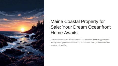 Maine Coastal Property for Sale offers a unique opportunity to own real estate along one of the most scenic shorelines in the United States. From charming oceanfront cottages to spacious waterfront estates, these properties provide stunning sea views and peaceful surroundings. Buyers can explore homes near sandy beaches, rocky cliffs, and picturesque harbors. Maine’s coastal properties are ideal for year-round living, vacation homes, or investment, offering natural beauty, privacy, and long-term value in desirable seaside communities.