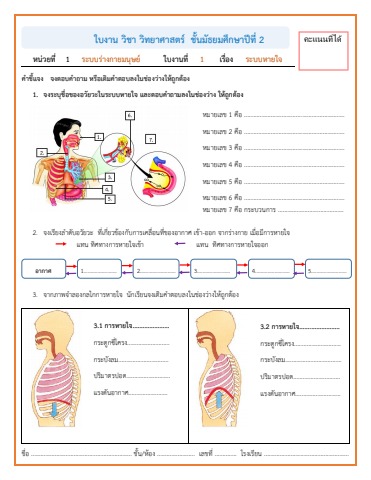 ใบงาน วิทยาศาสตร์ ม.2-เทอม 1_