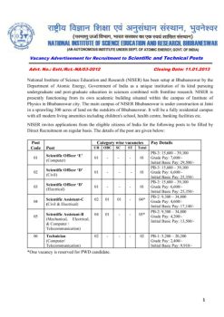 2 Details of essential & desirable qualifications, age, and required experience: Post code: 01: Scientific Officer ‘E’ (Computer) Essential: