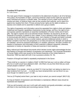 Freedom Of Expression Dr. Fathi Osman The main goal of God’s message to humankind is the attainment of justice in all of its fairness. This justice, the foundation ...