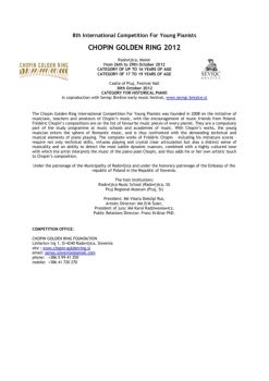 8th International Competition For Young Pianists CHOPIN GOLDEN RING 2012 Radovljica, Manor from 26th to 29th October 2012 CATEGORY OF UP TO 16 YEARS OF AGE