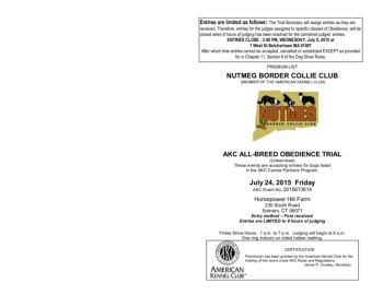 Official American Kennel Club Obedience Entry Form AKC Event No. 2015673814 NUTMEG BORDER COLLIE CLUB Friday July 24, 2015 Horsepower Hill Farm 236 South Rd ...