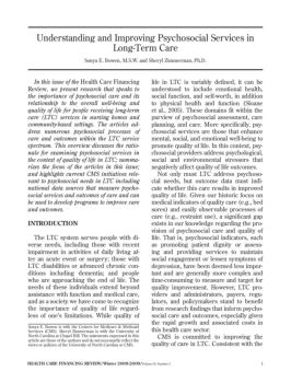 Understanding and Improving Psychosocial Services in LongTerm Care Sonya E. Bowen, M.S.W. and Sheryl Zimmerman, Ph.D. In this issue of the Health Care Financing