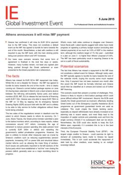 For Professional Clients and Institutional Investors Athens announces it will miss IMF payment 5 June 2015 Greece has confirmed it will miss its EUR 301m payment