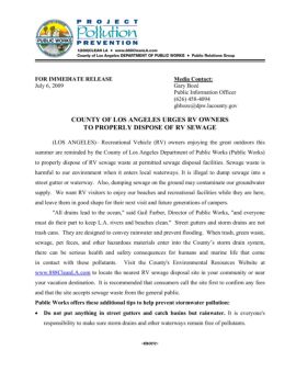COUNTY OF LOS ANGELES URGES RV OWNERS TO PROPERLY DISPOSE ...