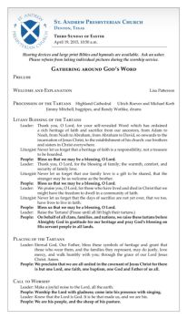 St. Andrew Presbyterian Church Denton, Texas Third Sunday of Easter April 19, 2015, 10:50 a.m. Hearing devices and large print Bibles and hymnals are available.