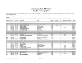 Coverage Policy Source Type ISSN/ISBN Publication Name Publisher Indexing and Abstracting Start Indexing and Abstracting Stop Peer-Reviewed Searchable Cited