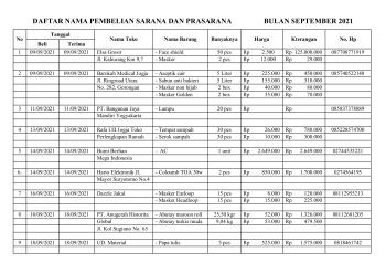 DAFTAR NAMA PEMBELIAN SARANA DAN PRASARANABULAN SEPTEMBER 2021