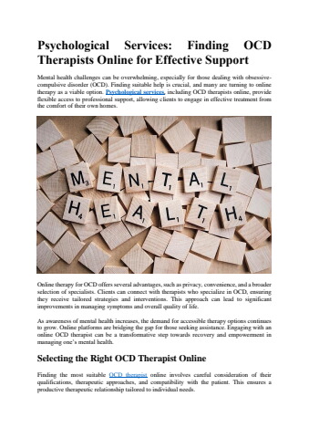 . Psychological services, including OCD therapists online, provide flexible access to professional support, allowing clients to engage in effective treatment from the comfort of their own homes.