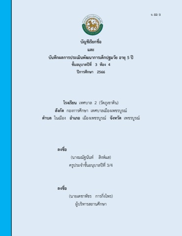 บัญชีเรียกชื่อและบันทึกพัฒนาการเด็กปฐมวัย