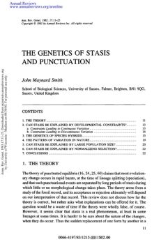 GENETICS OF STASIS AND PUNCTUATION 13 2. CAN STASIS BE EXPLAINED BY DEVELOPMENTAL CONSTRAINTS? Basic to the theory that stasis can be explained by developmental ...
