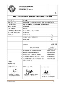 Tugasan ini dilaksanakan oleh Muhammad Ali Imran, Ahmad Irfan, Haziq Aiman, Muhammad Azwan dan Muhammad Shahizan