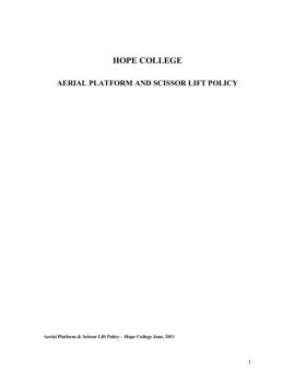 3 I. Introduction Aerial platform and scissor lifts are present throughout the campus of Hope College and are used and operated by a number of college staff and student