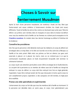 Après la mort d'une personne musulmane, de nombreux rituels ont lieu. Bien que l'enterrement soit assez similaire à l'enterrement chrétien, les rituels sont assez différents.
