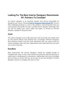 An interior designer is an essential member who will be responsible for designing your house. Choosing Interior Designers Westchester NY can be a little challenging looking at a rise in the numbers.