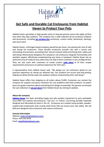 Find details about safe and durable cat enclosures from Habitat Haven to protect your pets. For more details, visit: Habitathaven.com.