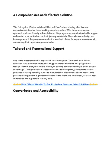One of the most remarkable aspects of "Die Entzugskur | Online mit dem Kiffen aufhören" is its commitment to providing personalised support. The programme recognises that every individual’s journey to quitting cannabis is unique, and it adapts accordingly. Through detailed assessments and tailored plans, participants receive guidance that is specifically suited to their personal circumstances and needs. This personalised approach significantly enhances the likelihood of success, as users feel understood and supported at every step.