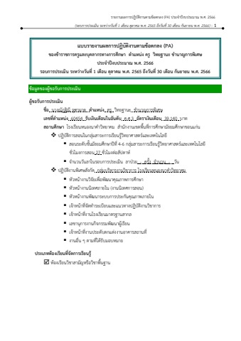 แบบรายงานผลการปฏิบัติงานตามข้อตกลง (PA) นางณัฎฐิณี จุฑาผาด