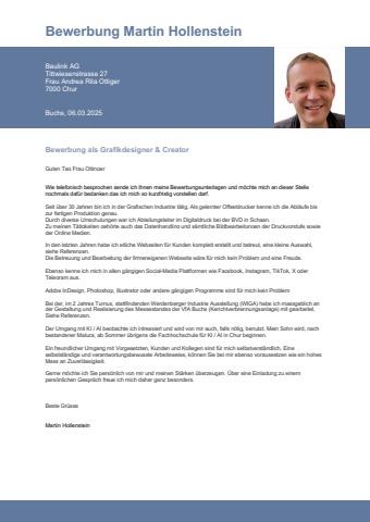 Bewerbung als Grafikdesigner & Creator