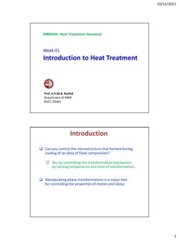 Week 01 Introduction to Heat Treatment Prof. A.K.M.B. Rashid Department of MME BUET, Dhaka Introduction ... allotropic transformations, recrystallization, etc.) 2.
