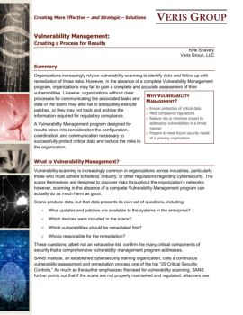 Creating More Effective – and Strategic – Solutions Vulnerability Management: Creating a Process for Results Kyle Snavely Veris Group, LLC Summary