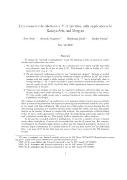 Extensions to the Method of Multiplicities, with applications to Kakeya Sets and Mergers Zeev Dvir⁄ Swastik Kopparty y Shubhangi Saraf z Madhu Sudanx
