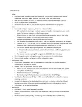 o Phase out of methyl bromide produced and imported in the U.S. was phased out in January 1, 2005. Except for allowed exemptions. “The critical uses of methyl ...