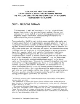 xenophobia in bottlebrush: an investigation into the reasons behind the attacks on african immigrants in an informal settlement in durban part 1: executive summary