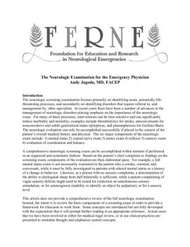 The Neurologic Examination for the Emergency Physician Andy Jagoda, MD, FACEP Introduction The neurologic screening examination focuses primarily on identifying acute ...