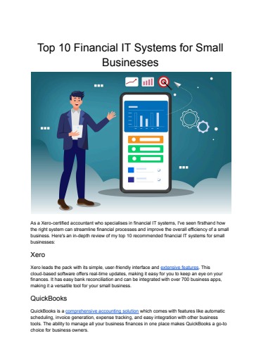 As a Xero-certified accountant who specialises in financial IT systems, I've seen firsthand how the right system can streamline financial processes and improve the overall efficiency of a small business. Here's an in-depth review of my top 10 recommended financial IT systems for small businesses: