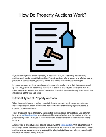 If you're looking to buy or sell a property in Ireland in 2023, understanding how property auctions work can be incredibly beneficial. Property auctions offer a unique and efficient way to purchase or sell real estate, providing buyers and sellers with numerous advantages.