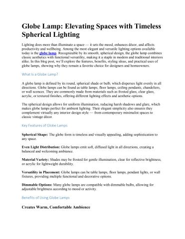 Globe Lamp Elevating Spaces with Timeless Spherical Lighting