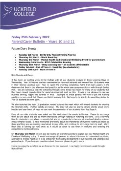 Parent Bulletin for KS4 - 25th February