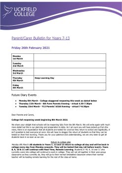 Parent Bulletin for all Years - 26th February