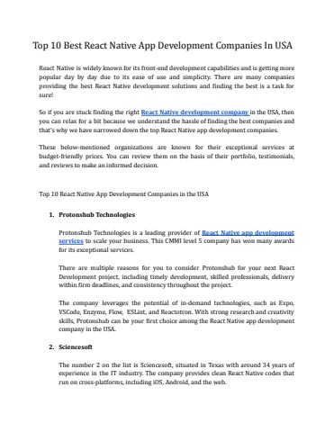 Top 10 Best React Native App Development Companies In USA