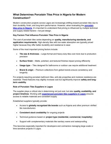 What Determines Porcelain Tiles Price in Nigeria for Modern Construction