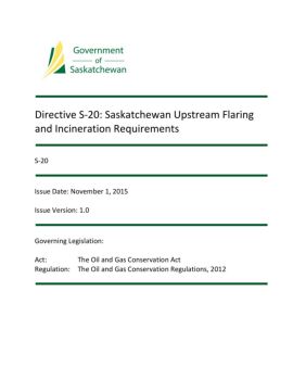 Directive S-20: Saskatchewan Upstream Flaring and Incineration Requirements . S-20 . Issue Date: November 1, 2015 . Issue Version: 1.0 . Governing Legislation: