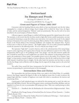 Switzerland Its Essays and Proofs By George W. Caldwell, E. P. S. 318 (Continued from JOURNAL No. 10, page 94) Cross and Figure of Value 1882-1907 ... essayed it. The ...